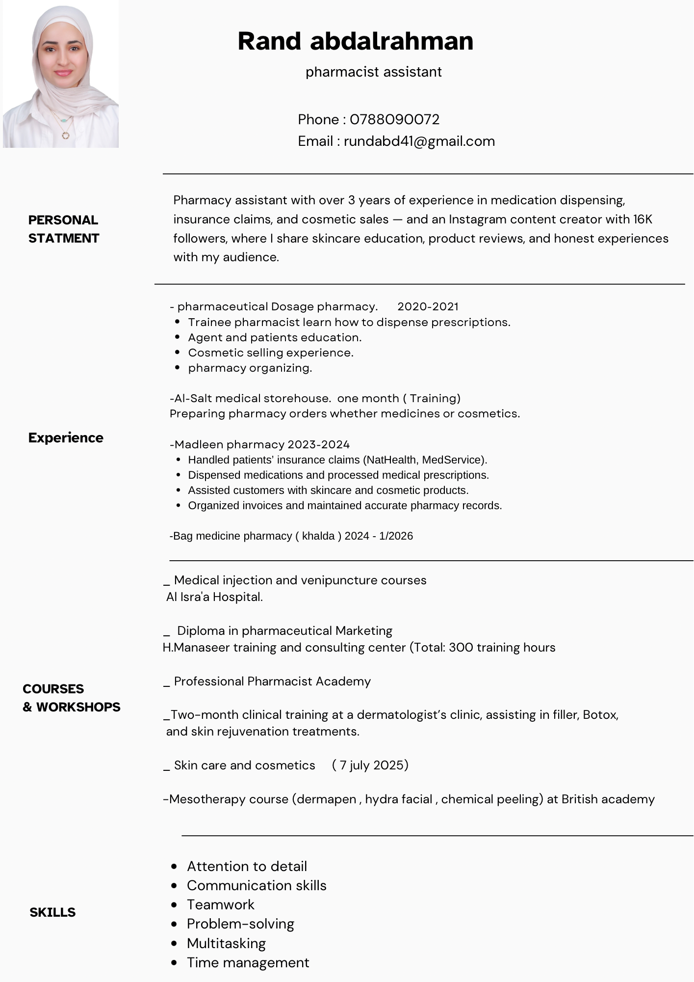 صيدلاني أملك خبرة بصيدليات المجتمع 5 سنوات – يوجد خبرات مشتريات ، تأمينات ، ادارة الفروع ، ادارة المخزون ، خبرة مبيعات ، مستحضرات التجميل